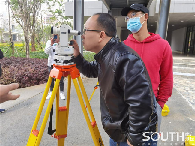培训期间,夏志明详细介绍了水准仪的发展历程,同时结合仪器校正台深化对测绘仪器结构、原理的认知。理论课结束后,安排了水准仪的多组实践操作。