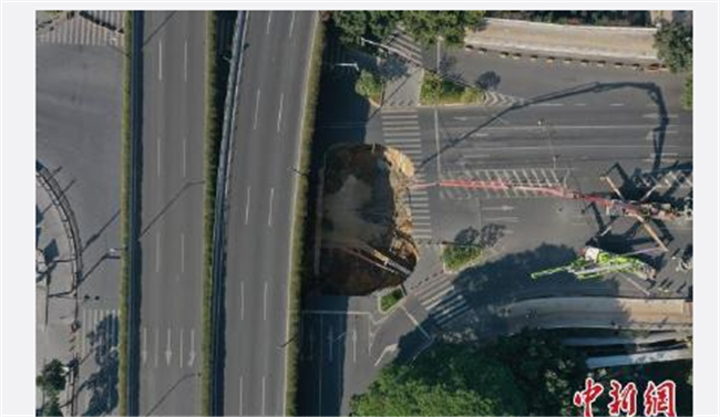 广州地铁11号线沙河站施工区域发生地面塌陷(图片来源:中新网)