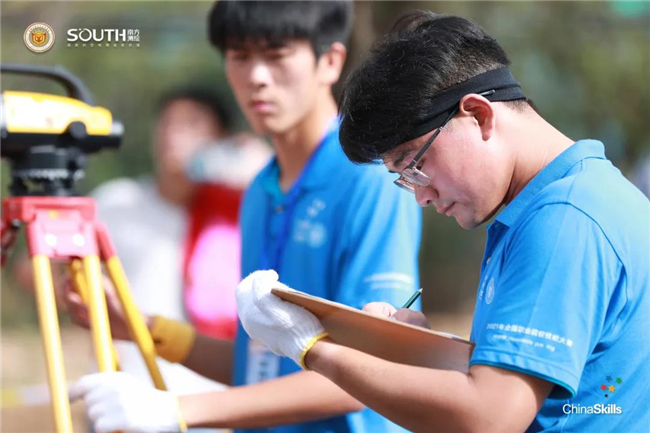 嘹亮的呐喊声停,口哨声一响,参赛的选手们手提设备快步向前,随即一系列测量操作有条不紊地开展。这是全国高职技能大赛工程测量赛项的比赛现场。