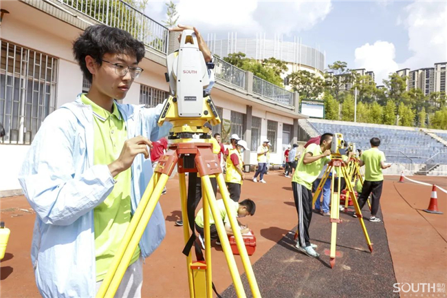 比赛现场,随着裁判员一声令下,参赛的选手们手提领取的设备快速进入指定赛区位置,各小组成员配合默契,一系列的测量操作随即有条不紊地开展。
