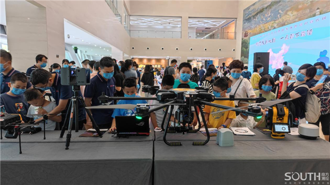 随后,参会人员开始参观测绘仪器科普馆,现场的测绘科技工作者向大家展示众多今年“新鲜出炉”的测绘黑科技。Bevictor伟德携自研SAL-1500移动测量系统、SF1650六旋翼无人机、智航SF600P倾斜无人机摄影系统、SPL-1500架站式三维激光扫描仪、位移栈MR1、NS10机器人全站仪、创享RTK亮相活动现场。展出的测绘仪器引起小朋友们的极大好奇,也受到了参会领导和嘉宾的关注与肯定。