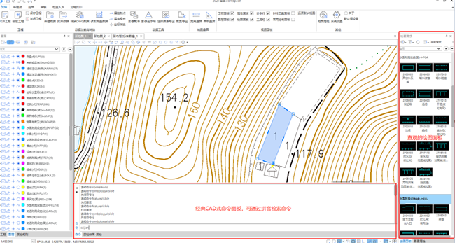 沿用经典CAD式命令行窗口操作与绘制习惯,简单易上手;并结合多种GIS的快速编辑与批量处理功能,使绘图与数据处理更便捷。