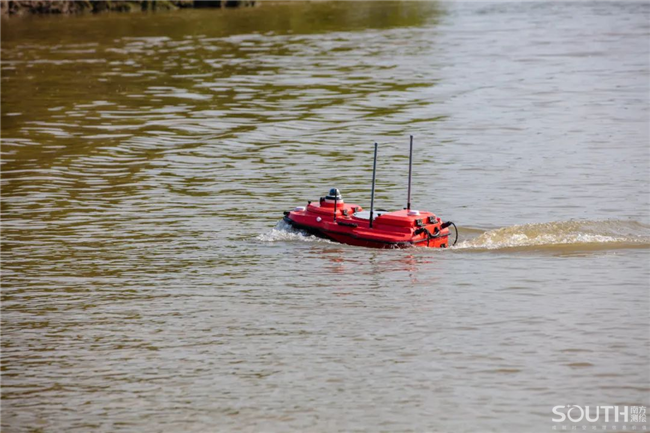 现场发布了新一代智能无人船SU20,主要用于江河湖泊、水库等水域中,可实现人工遥控、自主断面直线航行、水面悬停。集多种开挂功能于一身,是单兵作业好帮手。马超、冯于湘、黄德全、王久、王瑞等共同为“SU20智能无人船”剪彩。
