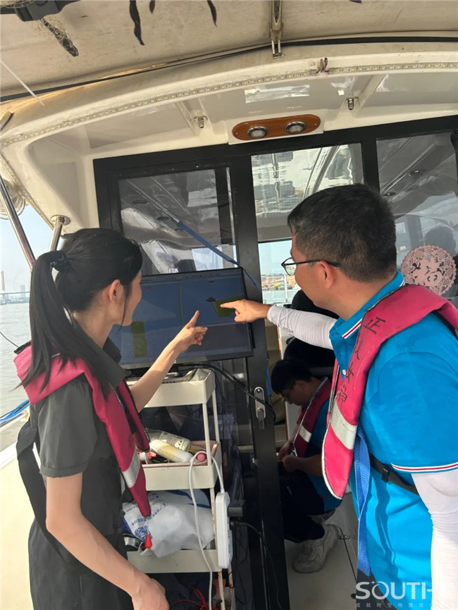 下午五点,部分用户在新造码头坐上配制SeaBat T51-R 超高分辨率便携式多波束的轮船现场体验,直观感受它带来的“加持技能”。同时,岸边用户也通过观看直播的方式见证了SeaBatT51-R带来的数据变化。