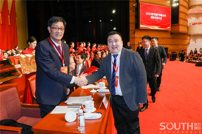 大会表彰了2023年在产学研深度融合等方面作出贡献的先进单位和个人,南方高铁荣获“中国产学研合作创新示范企业”称号,铁道部原副部长、中国工程院院士卢春房为南方高铁代表颁奖授牌。