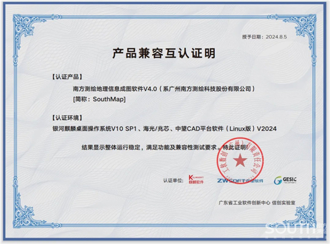 南方智能基础地理信息数据生产软件通过麒麟软件NeoCertify认证