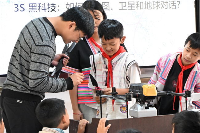 参加此次科普活动的有云南省“兴滇英才”青年人才、云南大学地球科学学院杨梦诗副教授以及云南省“兴滇英才”教学名师、云南大学地球科学学院地理信息科学系教研室主任刘蕊副教授,两位老师为同学们分别带来了“3S黑科技:如何让地图、卫星和地球对话?”和“天空侦探:用遥感探索生物质燃烧与污染的秘密”的主题科普讲座,拓宽同学们的视野,也点燃同学们对无人机应用的浓厚兴趣。