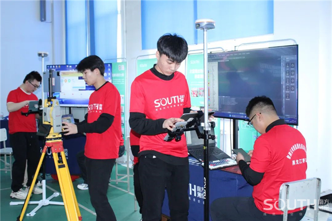 在智测元穹智能测绘展演中,10所院校40名参赛选手共同进入“南方元宇宙智能测绘场景”,四人组队共同完成目标测区的数字测图和争夺无人机来寻找“古建筑宝藏”,随后使用地面站三维激光扫描仪获取古建筑点云数据,以此来完成古建筑的内业建模。
