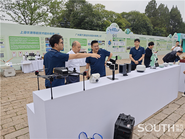 湖北分公司总经理刘杨亲自带队,为湖北省自然资源厅党组书记、厅长吴祖云等领导详细讲解设备的技术优势与应用场景,展现了国产测绘装备在国土调查、生态监测、智慧城市建设等领域的强大支撑能力。