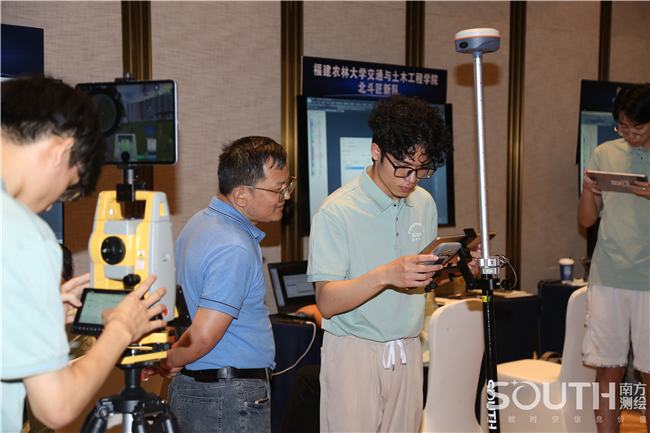 在智测元穹智能测绘展演邀请赛中,选手们迅速进入状态,依托元宇宙技术构建的虚拟仿真测绘场景,运用虚实结合的智能全站仪、RTK,无人机、三维点云扫描仪等前沿技术设备,沉着应对数字化测绘、古建筑建模等任务。他们眼神专注而坚定,动作娴熟且精准,将平日所学的专业知识与技能发挥得淋漓尽致,充分展现出扎实专业功底和精湛技术能力。