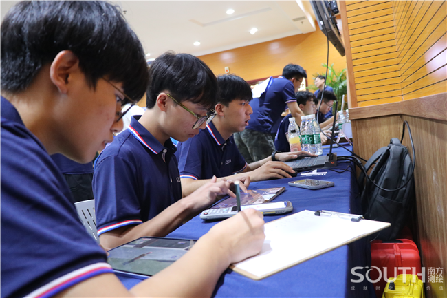 在智测元穹智能测绘展演中,10所院校40名参赛选手共同进入“南方元宇宙智能测绘场景”,四人组队共同完成目标测区的数字测图和争夺无人机来寻找“古建筑宝藏”,随后使用地面站三维激光扫描仪获取古建筑点云数据,以此来完成古建筑的内业建模。