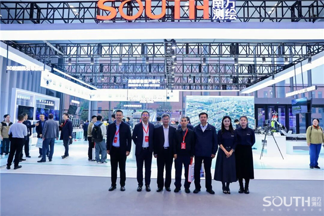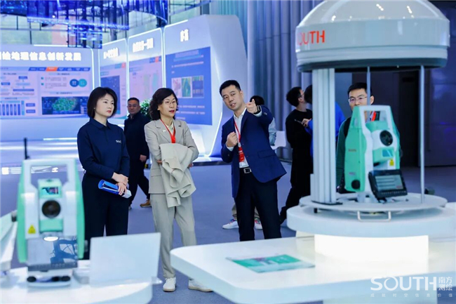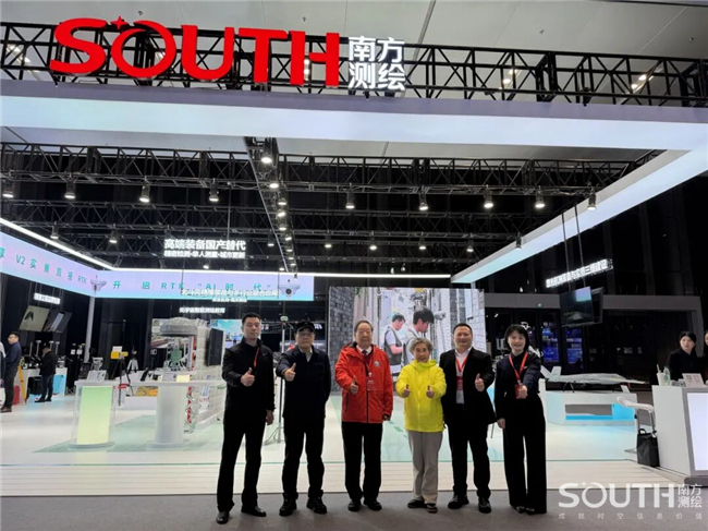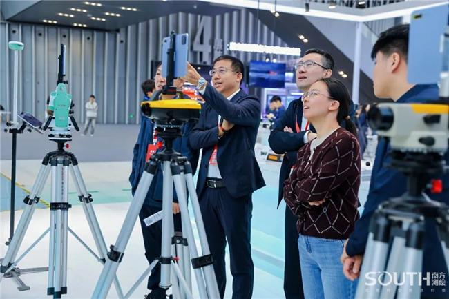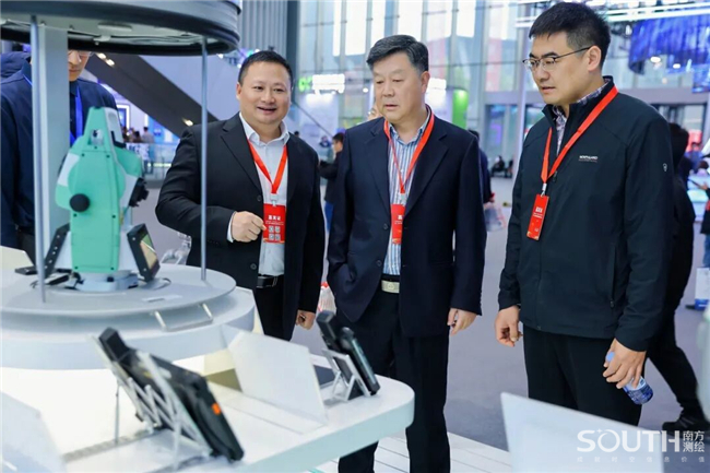 中国科学院、中国工程院院士,国家最高科学技术奖获得者李德仁(左三);中国工程院院士刘经南(左二)亲临南方展台