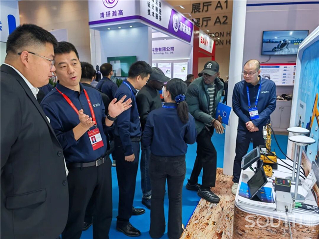 重点展示挖掘机3D引导系统与单人测量系统。前者依托北斗高精度定位与多传感器融合技术,实现精准挖掘作业;后者通过测量机器人与GNSS协同作业,支持单人高效完成测量与放样任务,显著提升施工效率。