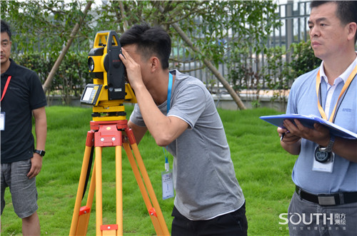 本次竞赛为期2天,比赛主要内容包括理论知识考核与技能操作考核,比赛工种分地籍测绘、工程测量与地图制图3种;考试内容分别为:1:500全数字地籍测图、宗地图编制及面积量算全站仪方向观测法(全圆测回法)和数字地形图入库。