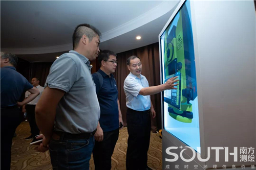 会议正式开始前,南方地信副总经理张少铖介绍了南方最新研发的虚拟仿真机,吸引了来宾们的围观。