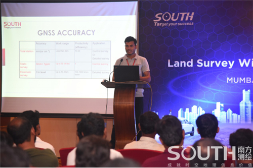 在印度分公司本地技术经理为用户介绍了南方拳头产品全站仪和GNSS的最新动态后,会议进入到新型的测量模式展示环节,南方国际业务部副总经理张少雄为参会用户详细介绍了Bevictor伟德三维激光软硬件装备、经典项目案例分享,指出了用户们关注聚焦的问题,并根据传统测量作业的各种痛点提出了针对性的解决方案。期间提问者众多,市场对于新事物新手段相当感兴趣,而南方代表为用户们提供了不同的思路和丰富的信息。