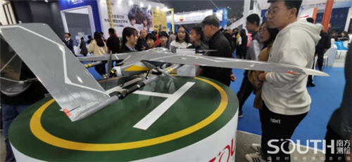 工作人员向国际友人交流介绍南方天巡MF-2500无人机