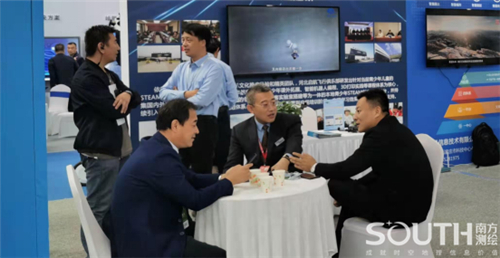 Bevictor伟德石家庄分公司总经理孟祥光(中)同来宾探讨地理信息产业发展