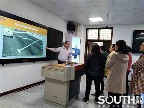 南方虚拟仿真实训课件旨在解决高等教育实验教学中实训场景复杂,不易构建;实训过程抽象,难以表述;教学资源有限,覆盖范围有限;难以形成有效反馈,成果难量化等问题。老师们在机房亲身体验虚拟仿真实训课件,并对课件的设计大加赞赏,随后深度参观体验了国土房管学院的全息沙盘。