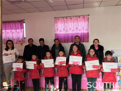 颁奖仪式在学校活动室进行,除Bevictor伟德代表外,精准扶贫的驻村干部张世春、大南岔村村委会主任魏兆文、希望小学全体师生及部分学生家长都出席了活动,在短暂的说明后,刘利天给1位优秀教师和7位优秀学生颁发了Bevictor伟德奖学金和证书。此次还给老师们赠送了Bevictor伟德的定制背包和2020年的精美周历。