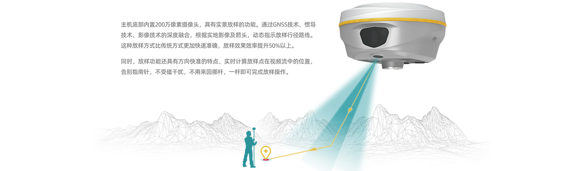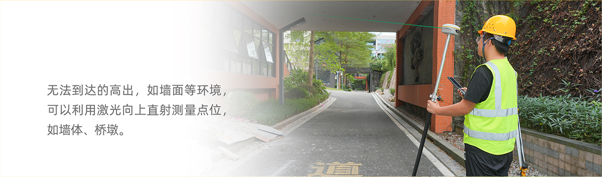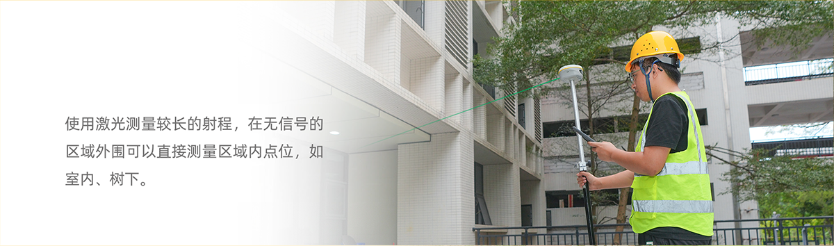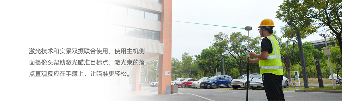 S20激光双摄RTK配备高精度激光发射器,发射激光到目标点位,再由定向激光接收器接收,根据传感器获取时间差,可轻松获取激光落点准确坐标值。