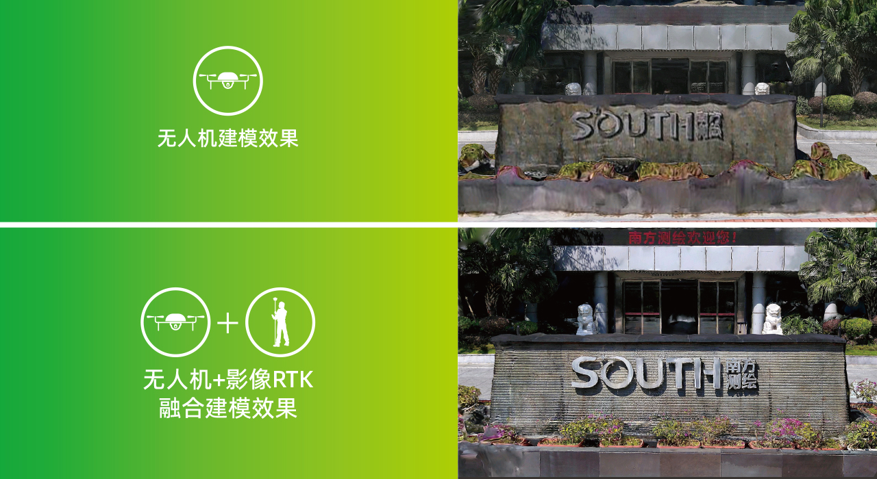 无人机修补测建模:在屋檐、树下等视觉盲区,会出现无人机拍摄不到或者影像拉花的问题,使得整个模型不完整。可使用影像RTK沿无人机视觉盲区进行动态拍摄,实现无人机数据与影像RTK数据联合精细化建模。
