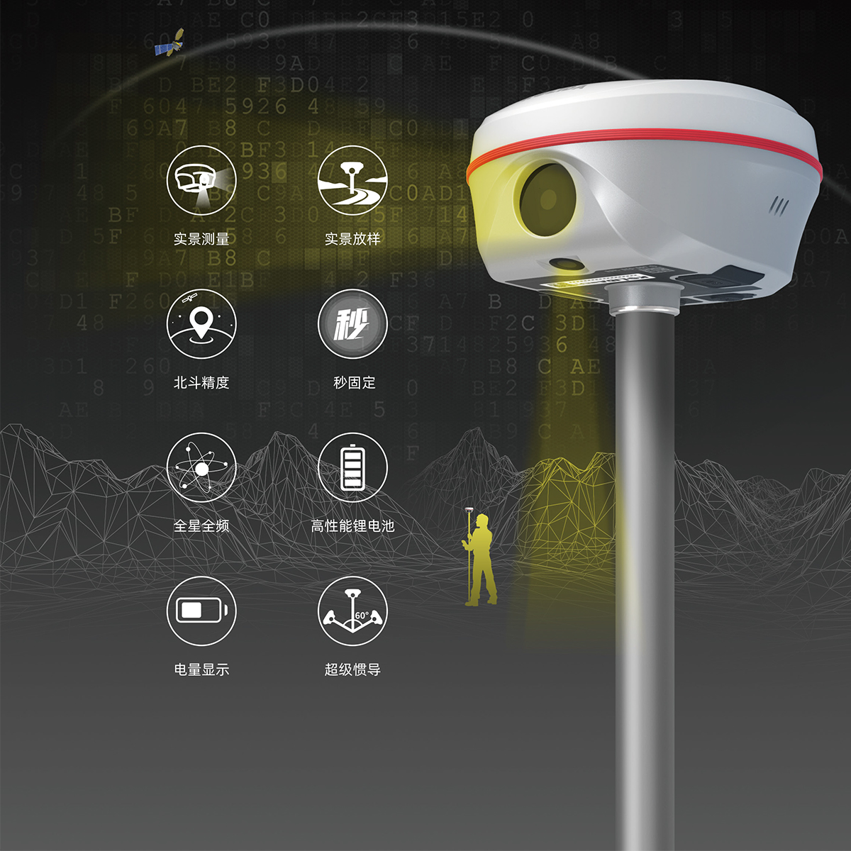 指示灯 | 四个指示灯:卫星灯、差分信号灯、蓝牙灯、电源灯、电量显示灯(仪器底部) |