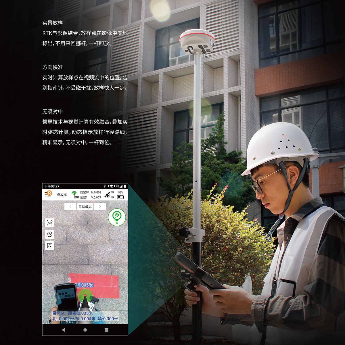 惯导倾斜测量 | 内置IMU惯性测量传感器,支持惯导倾斜测量功能,根据对中杆倾斜方向和角度自动校正坐标。 |