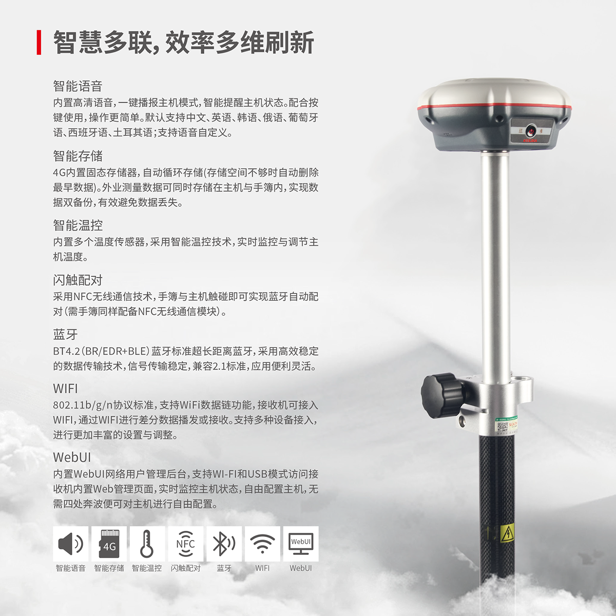 web交互 | 内置Web UI管理后台,支持Wi-Fi和USB模式访问接收机内置Web UI管理页面,实时监控主机状态,自由配置主机。 |
