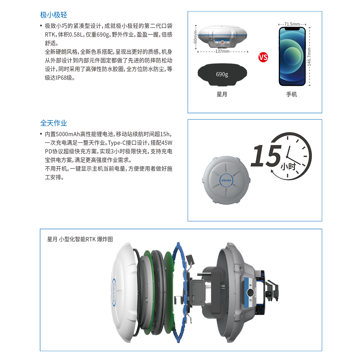 RTK测量精度 | 平面:±(8mm+1×10-6D)(D为所测量的基线长度,单位为mm) |