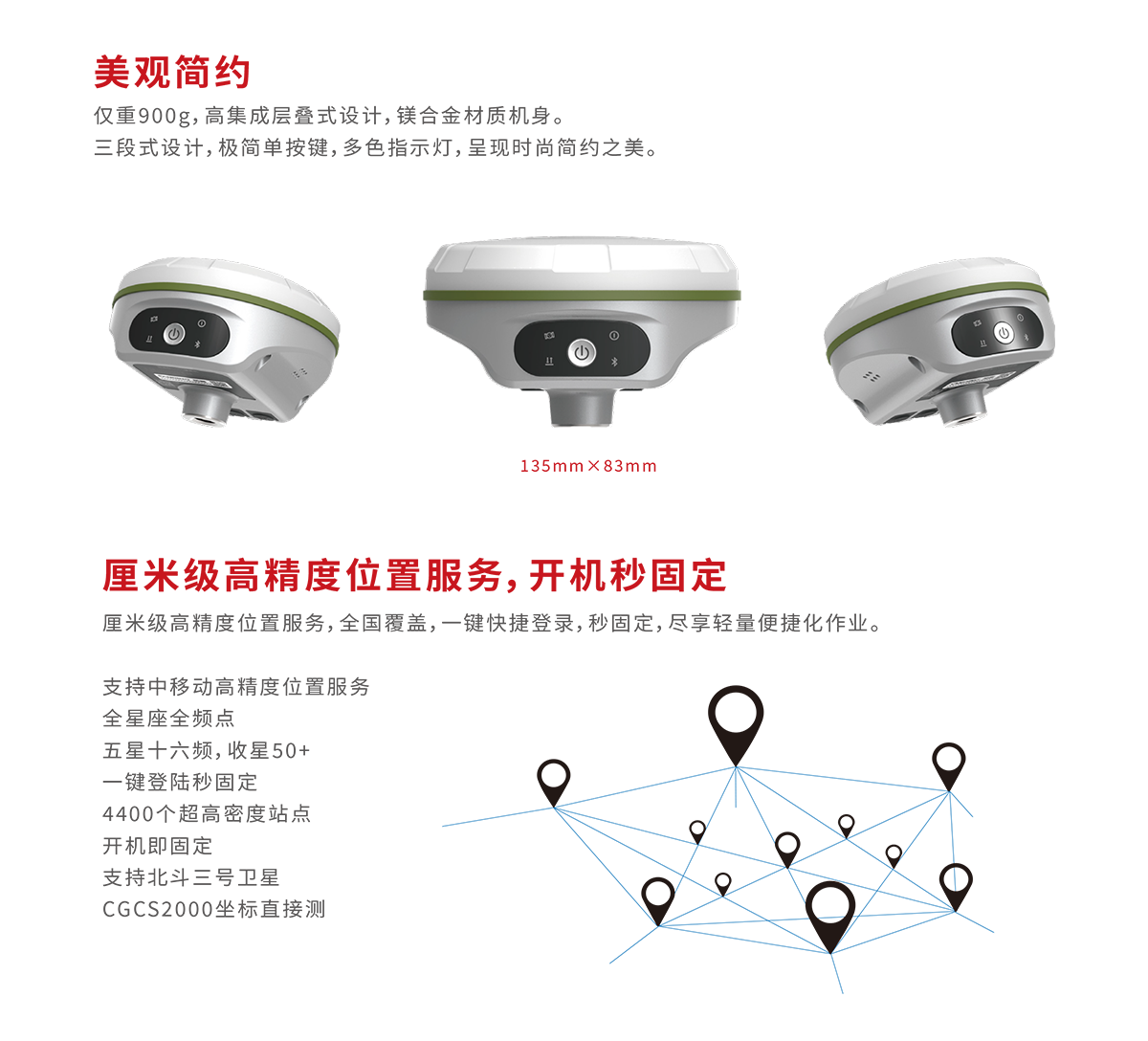 数据存储 | 4G内置固态存储器,丰富的采样间隔,最高可支持20Hz的原始观测数据采集 |