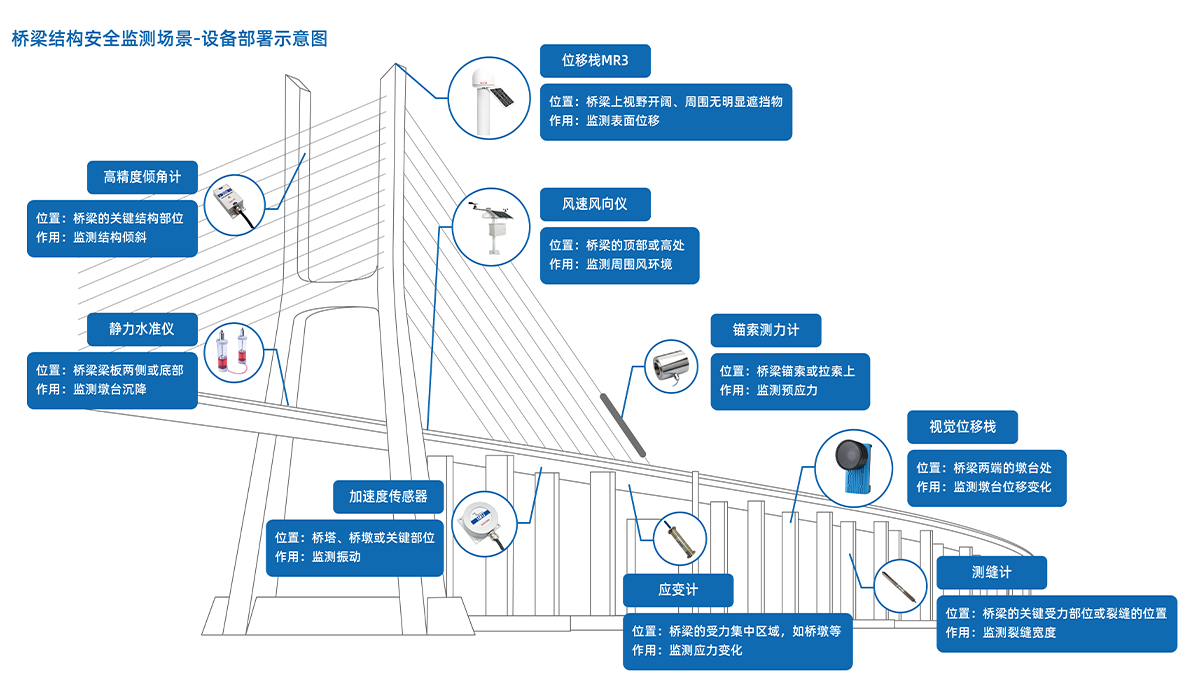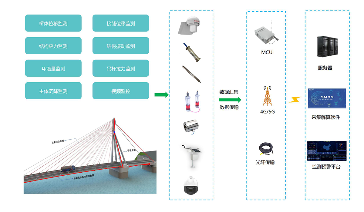 桥梁是城市交通的重要组成部分,承载着人们的出行需求和经济发展的压力,随着时间的推移和环境的变化,桥梁结构的安全性和稳定性面临着日益严峻的挑战,为了及时发现桥梁结构存在的问题并采取有效的预防措施,亟需对桥梁结构健康开展实时监测,动态掌握桥梁结构运行状况,进一步提升公路桥梁结构监测和安全保障能力。
