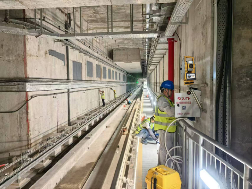 在隧道开挖导向整个方面我们也推出了国产化解决方案,通过测量机器人辅助,在盾构机掘进的时候,不间断地进行方向校验,保障整体工程的精准性。